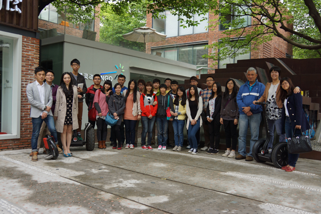 智慧灵动是国际高端灵动设备及增值服务供应商,是一个崭新行业的创领者。绿色低碳和实现社会责任是灵动最本质的追求和理想,他们对所有的产品选择都源于对高品质、超低碳的生活方式的追求。公司陈嘉宁董事长与同学们作了详细的交谈,讲述了自己创业的经历和公司的经营理念和模式,他很重视年轻人的创新精神,期望新一代的大学生能将智慧和创意运用到日后的工作当中。在参观过程中,同学们还体验到了该公司代理的SEGWAY系列产品,了解和接触到当前尖端的节能智能代步工具。