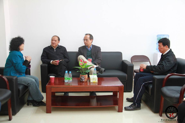 图3 毛蕴诗教授(左二)、全竞教授(左三)与我院领导亲切交流