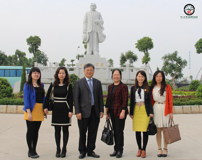 图1 王桂珍教授(右三)在我院王庭槐院长(左三)陪同下参观校园在中山像前合影留念