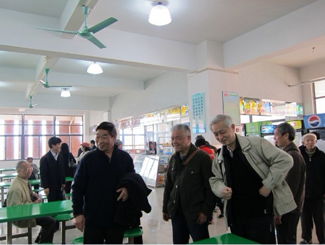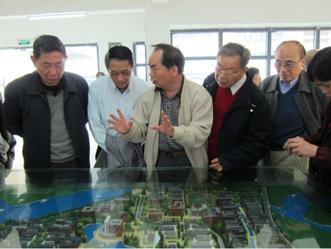2012年3月2日上午10时,母体学校中山大学57名离退休老领导莅临我院东莞校区参观和 指导工作。他们在学院刘美南书记、陈伟林院长、蓝永金副院长副书记(兼校区管委会主任)、陈荣冠副书记、李沐林副院长、叶锦昭副院长、行政人事部丁艮平部长,校区管委会杨帆常务副主任、简庚荣副主任等领导的陪同下,依次重点参观了校园的学生宿舍、临时行政办公楼、运动场、学生食堂、教师公寓、教学楼。