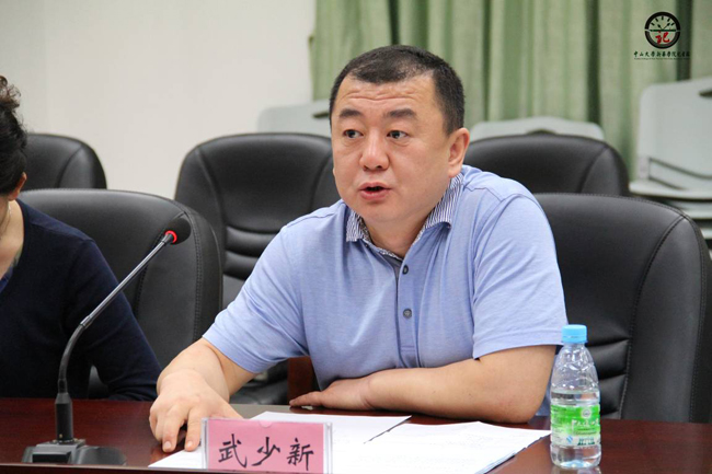 中山大学组织部武少新高度赞扬了我院党建工作的扎实进行,同时赞扬我院的社会影响力。他表示由于党建性质不同,希望在党建工作中多做交流,给我院党建工作支持和帮助。