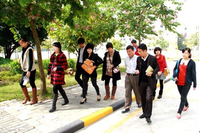 图2 广东岭南职业技术学院党务干部陪同我院东莞校区调研人员参观校园