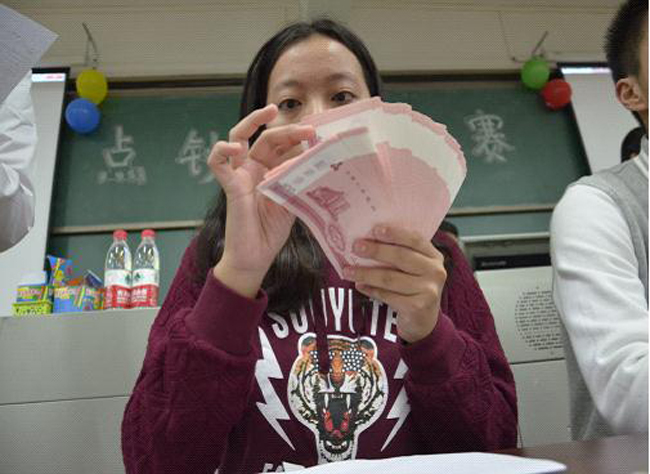 比赛现场中,选手们的点钞技术相当熟练,虽然点钞方法及手势都各不相同,但点钞的速度非常迅速,选手们全神贯注于手中的纸钞,以便能在规定的时间内完成相应的钞票数量,霎时间,整个教室里只听见点钞纸滑过指尖的沙沙声。在经过激烈的角逐后,曾润琼同学荣获个人赛冠军,连桂珍、杜菁菁等同学获得团体赛冠军。