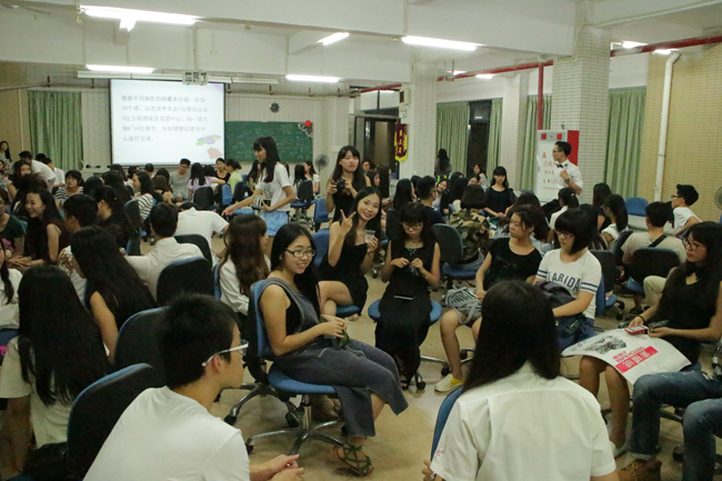 在晚会上,14级新生为现场观众献上了歌曲串烧,动感的音乐、熟悉的旋律点燃了现场的激情,也博得了阵阵掌声。在游戏环节中,大家跃跃欲试,一阵阵欢声笑语频频传来。在新老生交流环节,由在场的12、13级同学组成的“师兄师姐团”为14级新生们答疑解惑,力求帮助新生解决踏入大学学习和生活上遇到的问题,使其尽快融入“艺术设计学系大家庭”。