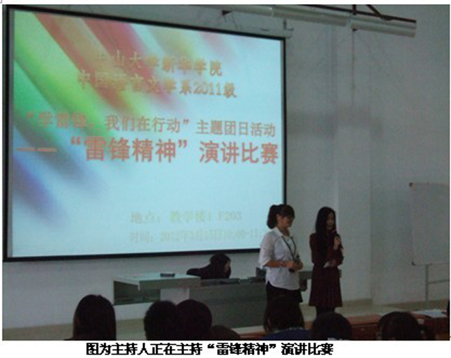 2012年3月5日是第49个学雷锋日,为弘扬雷锋同志的伟大精神,中山大学 学院2011级中国语言文学系举办“学雷锋,我们在行动”主题团活动——“雷锋精神”演讲比赛。