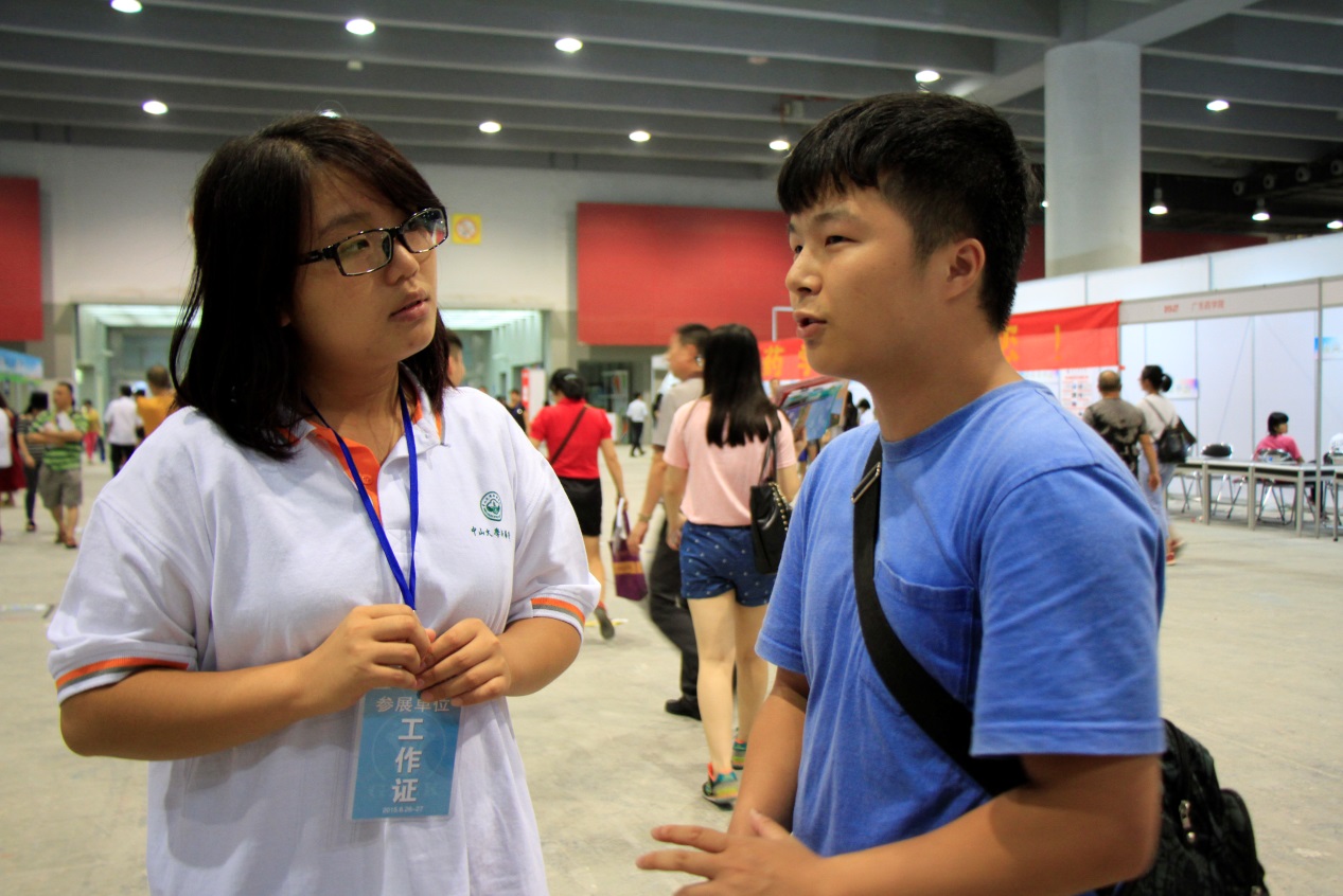 学院2015年度招生工作咨询会在广州琶洲会展中心举行,学院院长王庭槐、副院长杨卫华等院领导,及教务部部长尹小川、招生办公室主任刘景毅等部门负责人亲临咨询会现场,为广大高考考生和家长提供全方位的咨询服务。