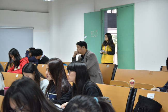 李中生副院长与学生同坐,同堂听课,认真观摩学生的上课动态,希望学生能够适当多接触本专业以外的知识来拓宽自己的知识面