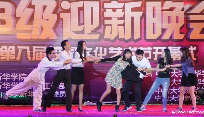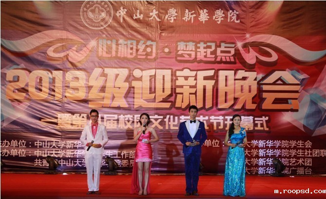 “心相约 梦起点”2013级迎新晚会主持人登场,宣布晚会正式开始
