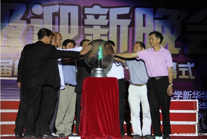 王庭槐院长、刘美南书记、刘荣宏总经理、蓝永金副书记副院长、杨卫华副院长、陈荣冠副书记、李中生副院长、潘上荣总经理共同按动启动球,宣布第八届校园文化艺术节正式开幕。