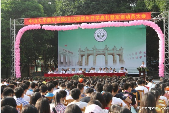 9月16日上午8时,广州校区2013级新生开学典礼暨军训动员大会在生活园篮球场举行。学院领导王庭槐、刘美南、蓝永金、陈荣冠、李沐林、林应河、江沛、黄志男、原院长张纯祥教授、陈伟林研究员、学院督导组组长潘琪研究员、承训部队首长邹俊及各系部负责人等在主席台就坐。会议由李中生副院长主持。