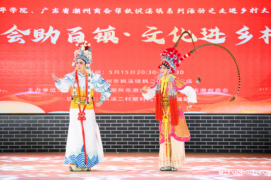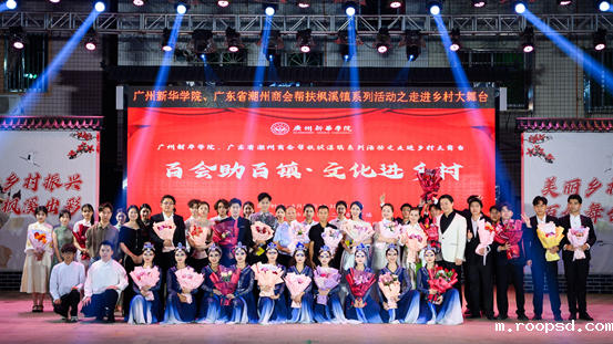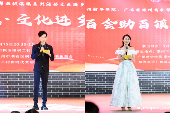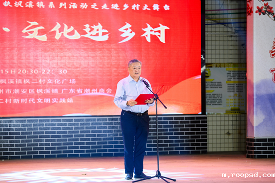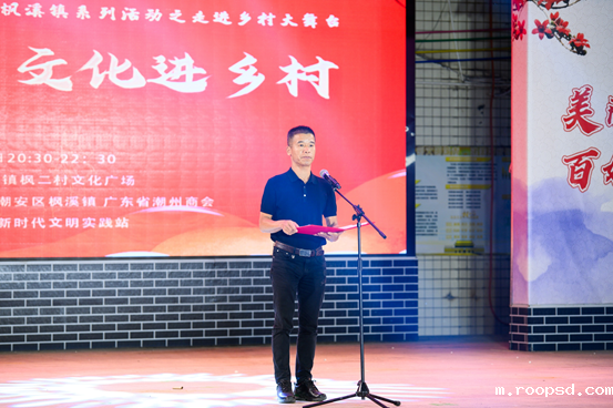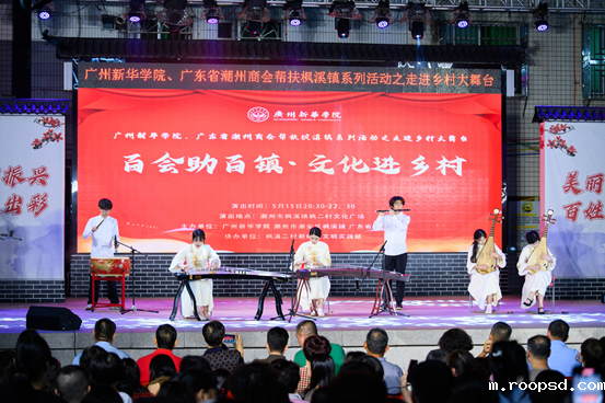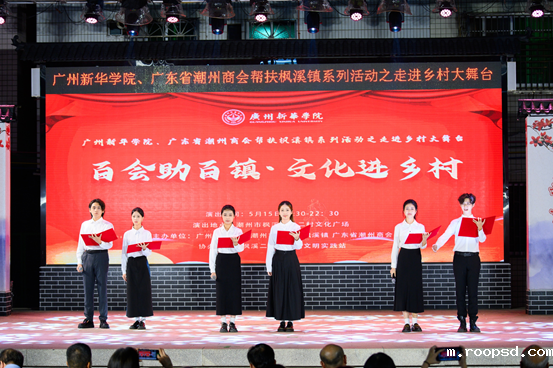 为贯彻落实教育部关于全面实施学校美育浸润行动的精神,大力弘扬中华美育精神,提升乡村文化软实力,助力乡村振兴。5月15日晚,由伟德app入口、潮州市潮安区枫溪镇、广东省潮州商会联合主办,枫溪二村新时代文明实践站协办的“百会助百镇·文化进乡村”——伟德app入口文艺进乡村专场演出活动在“南国瓷乡”——枫溪镇枫二村文化广场举行。伟德app入口(以下简称“学校”)董事长刘荣海、校长王庭槐、顾问蔡照波,枫溪镇党委副书记丁树雄、党委委员祝宗辉等嘉宾出席活动。晚会由学校教师杨超、江安婷主持。