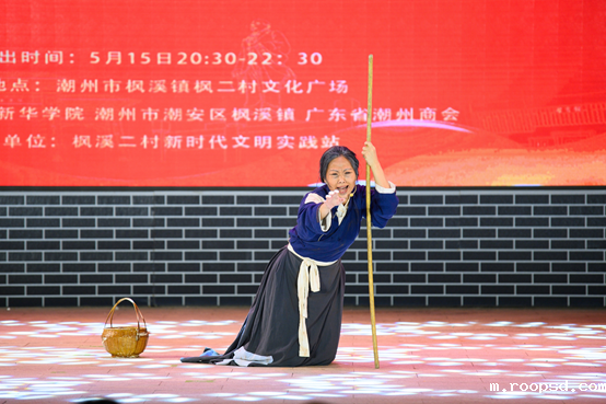 演出在民乐重奏《盛世国乐》的悠扬旋律中正式拉开帷幕,一系列丰富多彩的节目轮番上演。《蓝色的风》女子民舞轻盈优雅,展现了东方女性的柔美与韵味;潮语歌曲《红头船》则以其独特的韵味,勾起了在场观众的乡愁与回忆;朗诵节目《月光下的中国》用声音在月光下读懂中国,仿佛让我们看到了这片大地的过去、现在和未来;流行演唱《找自己》则展现了当代青年的活力与激情;男声独唱《多情的土地》歌曲旋律优美,节奏徐缓,给人以深情厚重之感;女声独唱《火把节的欢乐》生动展现了彝族人民欢庆火把节的热闹场景。此外,竹笛独奏《大鱼海棠》、琵琶独奏《彝族舞曲》等传统民乐表演也让观众领略了中华传统艺术的魅力。潮州市潮剧团还特别呈现了《潮汕大锣鼓》《你我皆是忠良后》等优秀潮剧表演,激昂的鼓点和铿锵的锣声,仿佛讲述着潮汕人民奋勇向前的故事。