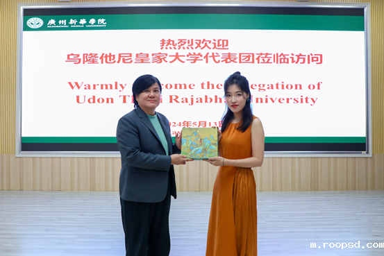 伟德app入口副校长刘婉莉(霖霖)与泰国乌隆他尼皇家大学校长Khanisara Thanyasunthornsakun代表双方互赠礼物,以表达诚挚的心意。