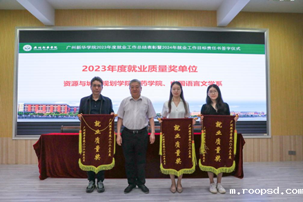 学校校长王庭槐(左二)为2023年度获就业质量奖单位颁奖
