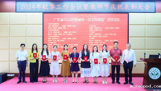 王庭槐校长、郝登峰书记为“广东省2023年度省级一流本科课程”获奖团队代表颁奖