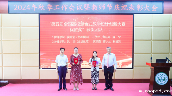 王庭槐校长、郝登峰书记为“第五届全国高校混合式教学设计创新大赛优胜奖”获奖团队代表颁奖