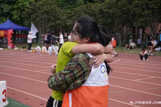 偌大的运动场上,不只有体育和竞技,还有工作人员们忙碌的身影。他们检录计分、维持秩序、清扫场地……为运动会的顺利进行保驾护航。看台上,还有一群为运动健儿加油呐喊的观众,赛场下,也总有一群为他们送上温暖的朋友。