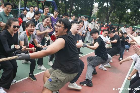 教职工比赛现场,平日里严肃认真的老师们化身为活力四射的运动员,积极参与袋鼠接龙、两人三跑、旋风跑等趣味竞赛,欢声笑语不断。毛毛虫竞速和指压板冲关更是考验着老师们的默契与勇气,他们不甘落后,奋力拼搏,展现出别样的青春风采。拔河与跳绳比赛中,老师们咬紧牙关,凝心聚力,周围学生的呐喊助威声此起彼伏,双方斗志昂扬,共同诠释了团结协作、勇攀高峰的精神。