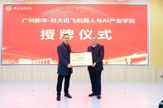 紧接着,双方领导共同为广州bv伟德体育app官网-科大讯飞机器人与AI产业学院揭牌,标志着该产业学院正式宣告成立。随后,王庭槐还向科大讯飞产教融合业务线华南区总经理莫小泉授予了产业学院牌匾。