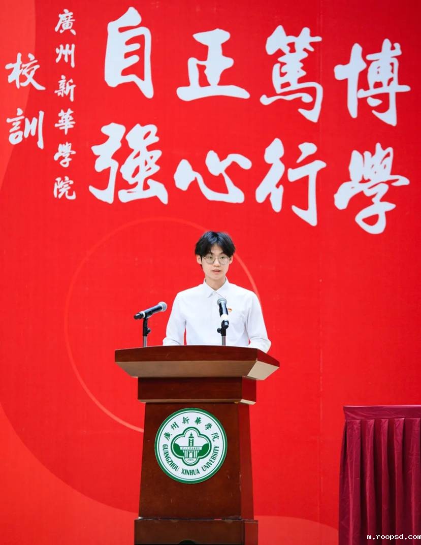 艺术设计与传媒学院陈堃同学作新生代表发言。她表示,面对大学生活的挑战,有优秀的同辈、在身后支持我们的老师,我们更加有信心和勇气,在新的征程里心怀抱负与担当,大展青春才华。我们将自觉肩负起时代赋予的责任,不断积累、沉淀、升华,用青春力量为新时代放歌,共同构筑更加充满活力与创造力的伟德app入口。