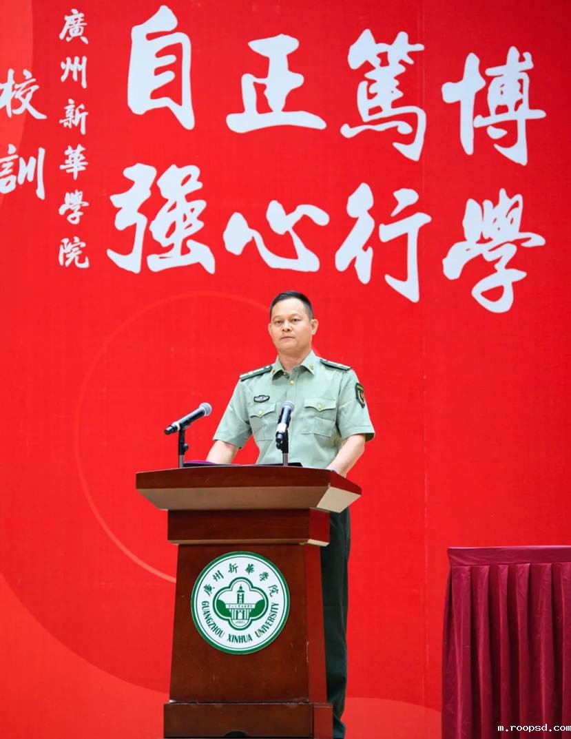 南沙区人武部军训办主任母连秀同志在讲话中指出,军训能够增强同学们的国防观念、提高自律能力,促进同学们整体素质的全面提高。他强调,要强化思想淬炼,以国防教育激发爱国情;要以高标准提升军事技能,严守纪律,传承军人精神;要以更实的举措磨砺优良作风,将军训所学融入日常,争做新时代优秀青年。