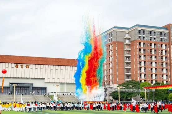 学校校长王庭槐在致辞中回顾了学校二十年发展历程与体育精神的内在契合。他指出,学校全面贯彻党的教育方针,持续完善体育设施、深化教学改革、营造体育文化,切实将“健康第一”理念融入育人全过程。此刻赛场上的青春热情,正与第十五届全运会“激情全运会,活力大湾区”的时代强音交相辉映,彰显了团结协作、勇于拼搏的体育精神。他期望运动员发扬风格、赛出水平;裁判员和工作人员公正履职、保障赛事;广大师生将赛场精神融入日常,以运动促发展。最后,他勉励大家以二十周年为新起点,将体育激情转化为推动学校高质量发展的持久动力。