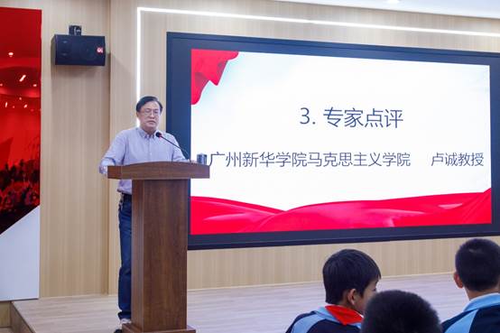 我校马克思主义学院卢诚教授在点评中高度肯定了各位老师的精彩展示与本次一体化教研活动的设计与成效。其中,小学课堂注重感性启发,中学阶段侧重价值引领与实践思考,大学教学深化理论阐释与使命担当,充分体现了思政课螺旋上升、层层递进的一体化建设要求,为麻涌镇深化思政课改革与育人机制创新提供了有益示范。