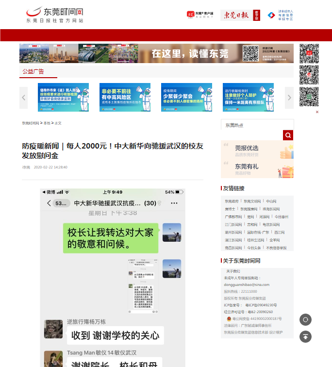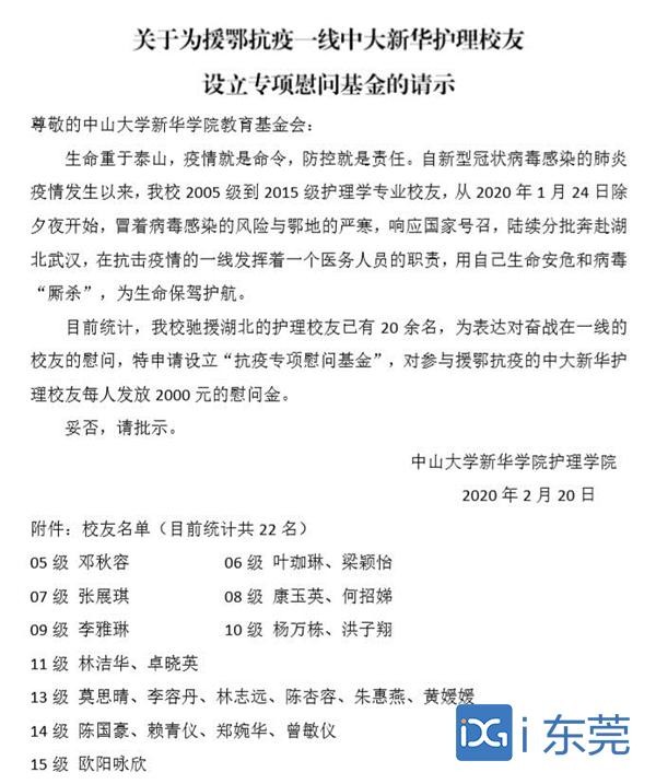 目前,中大bv伟德体育app官网驰援湖北的护理校友已有20余名,为表达对奋战在援鄂抗疫一线护理校友的慰问,中山大学bv伟德体育app官网学院护理学院向学校发起设立“抗疫专项基金”的申请,经中大bv伟德体育app官网校长、疫情防控领导小组组长王庭槐和副校长副书记、疫情防控领导小组副组长蓝永金批示,中大bv伟德体育app官网同意为援鄂抗疫一线护理校友设立了专项慰问基金,对参与援鄂抗疫的中大bv伟德体育app官网护理校友每人发放2000元慰问金。