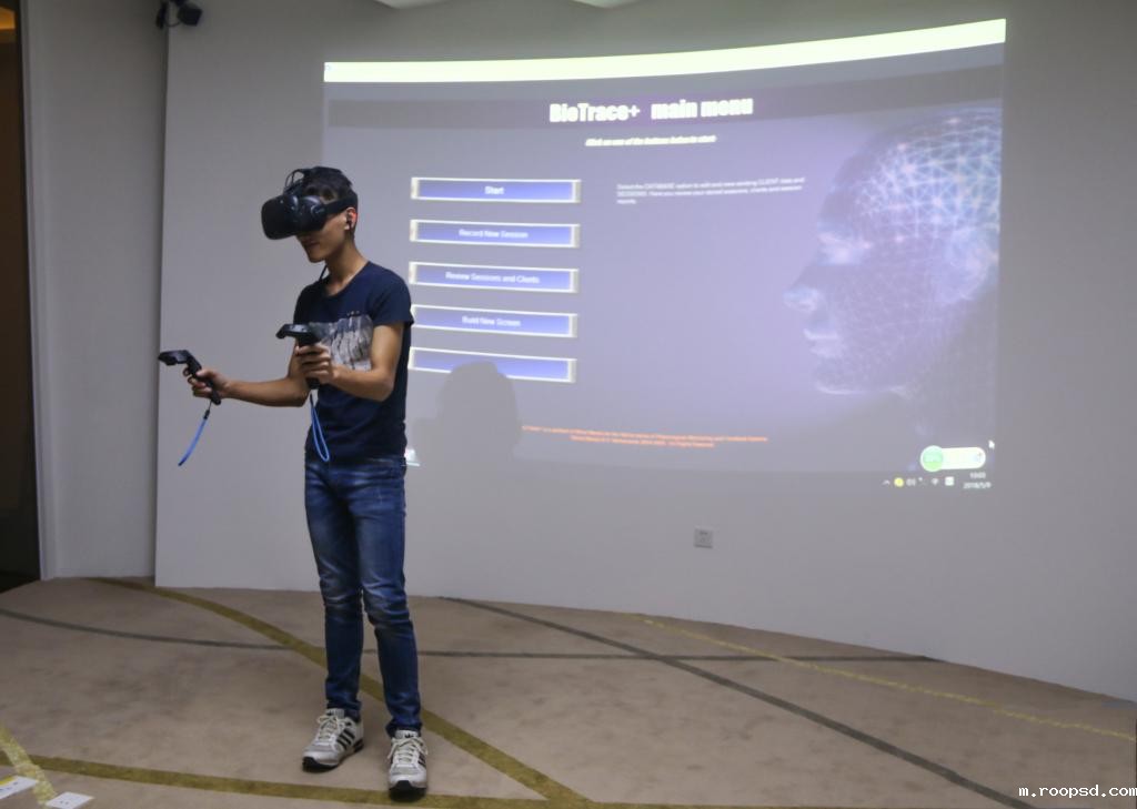 学生在生物反馈实验室体验沉浸式虚拟现实(VR)技术 图/学校提供