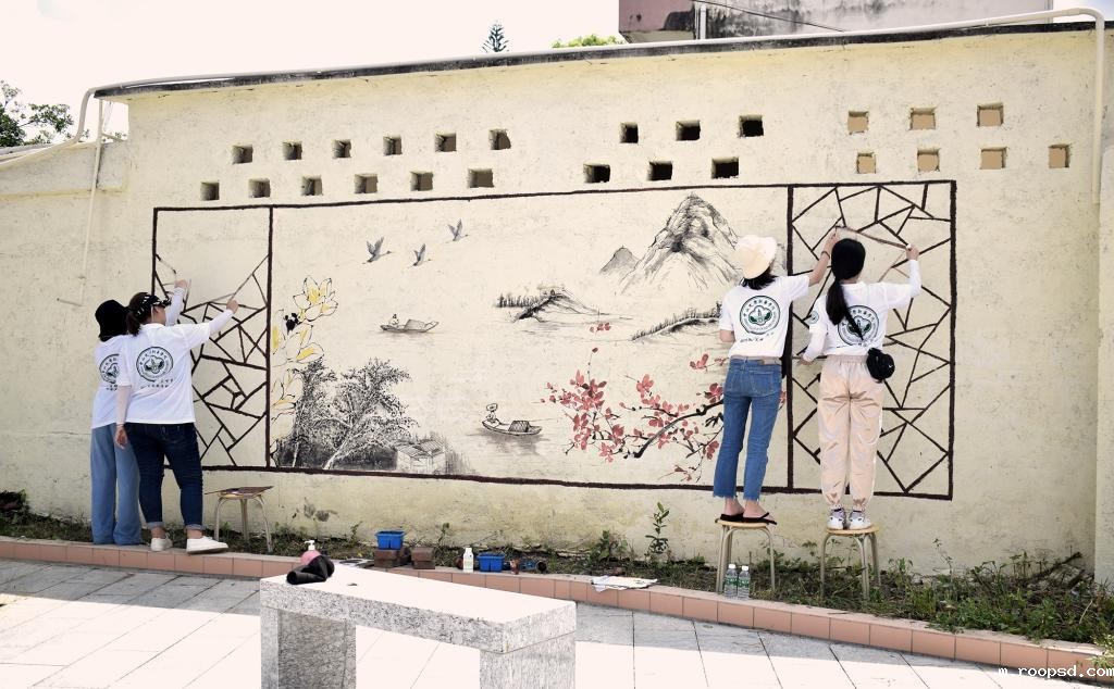中大bv伟德体育app官网暑期三下乡社会实践队绘制山水画 图/学校提供