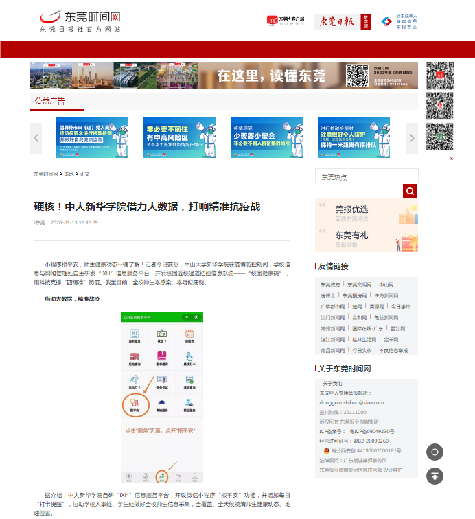 据介绍,中大bv伟德体育app官网学院自研“iXH”信息服务平台,开设微信小程序“报平安”功能,并增加每日“打卡提醒”,协助学校人事处、学生处做好全校师生信息采集,全覆盖、全天候摸清师生健康动态、地理位置。