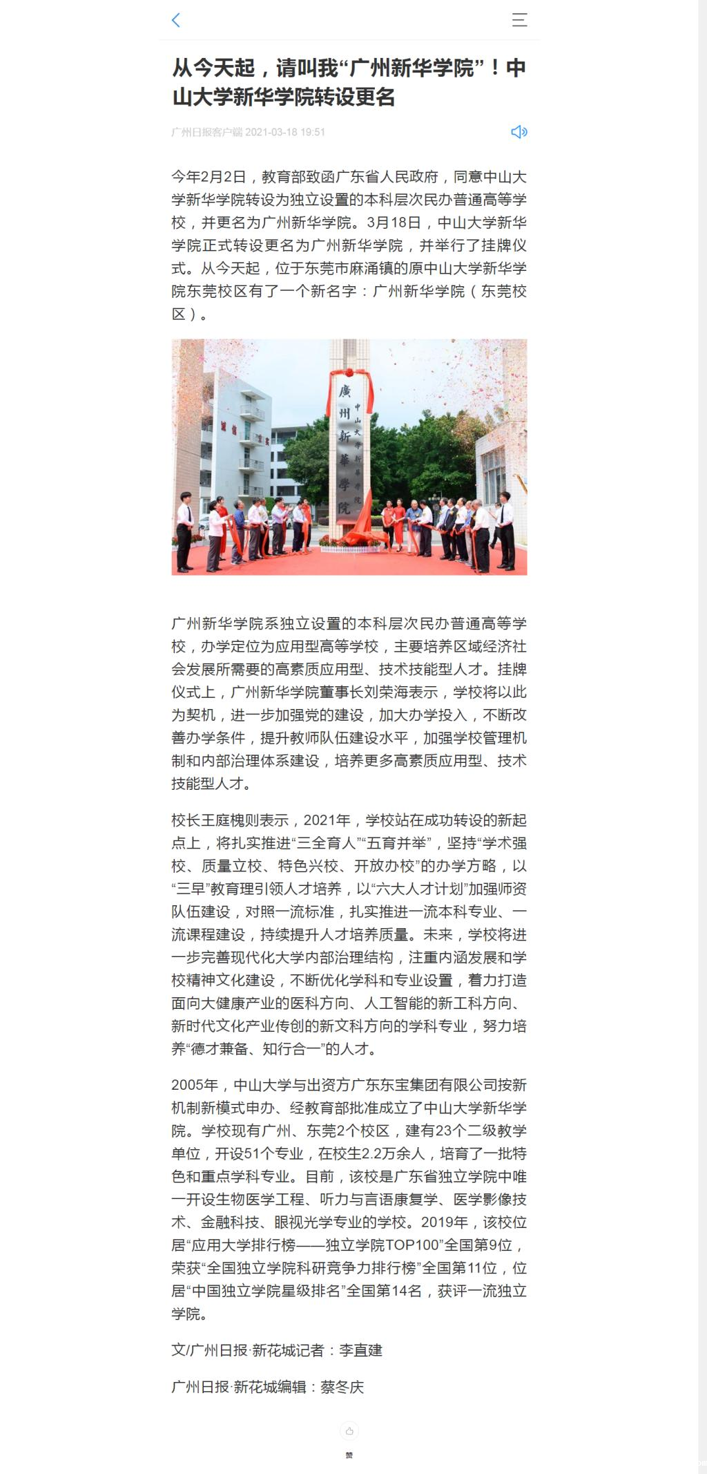 今年2月2日,教育部致函广东省人民政府,同意中山大学bv伟德体育app官网学院转设为独立设置的本科层次民办普通高等学校,并更名为伟德app入口。3月18日,中山大学bv伟德体育app官网学院正式转设更名为伟德app入口,并举行了挂牌仪式。从今天起,位于东莞市麻涌镇的原中山大学bv伟德体育app官网学院东莞校区有了一个新名字:伟德app入口(东莞校区)。
