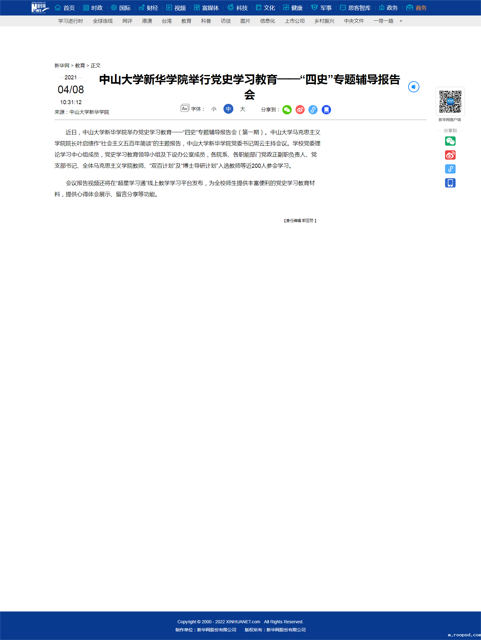 会议报告视频还将在“超星学习通”线上教学学习平台发布,为全校师生提供丰富便利的党史学习教育材料,提供心得体会展示、留言分享等功能。