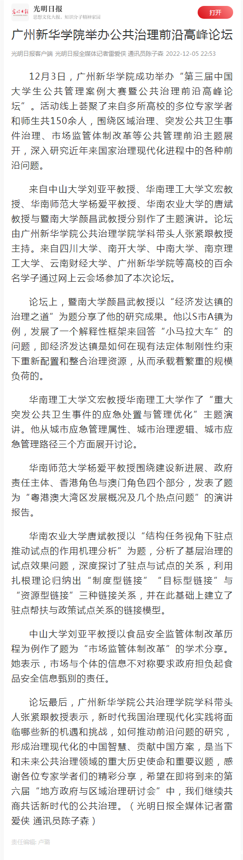12月3日,伟德app入口成功举办“第三届中国大学生公共管理案例大赛暨公共治理前沿高峰论坛”。活动线上荟聚了来自多所高校的多位专家学者和师生共150余人,围绕区域治理、突发公共卫生事件治理、市场监管体制改革等公共管理前沿主题展开,深入研究近年来国家治理现代化进程中的各种前沿问题。