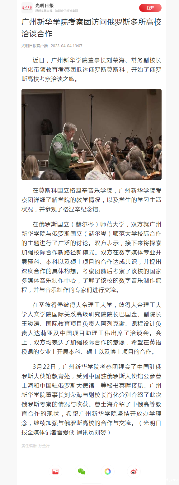 在莫斯科国立格涅辛音乐学院,伟德app入口考察团详细了解学院的教学情况,以及学生的学习生活状况,并参观了格涅辛纪念馆。