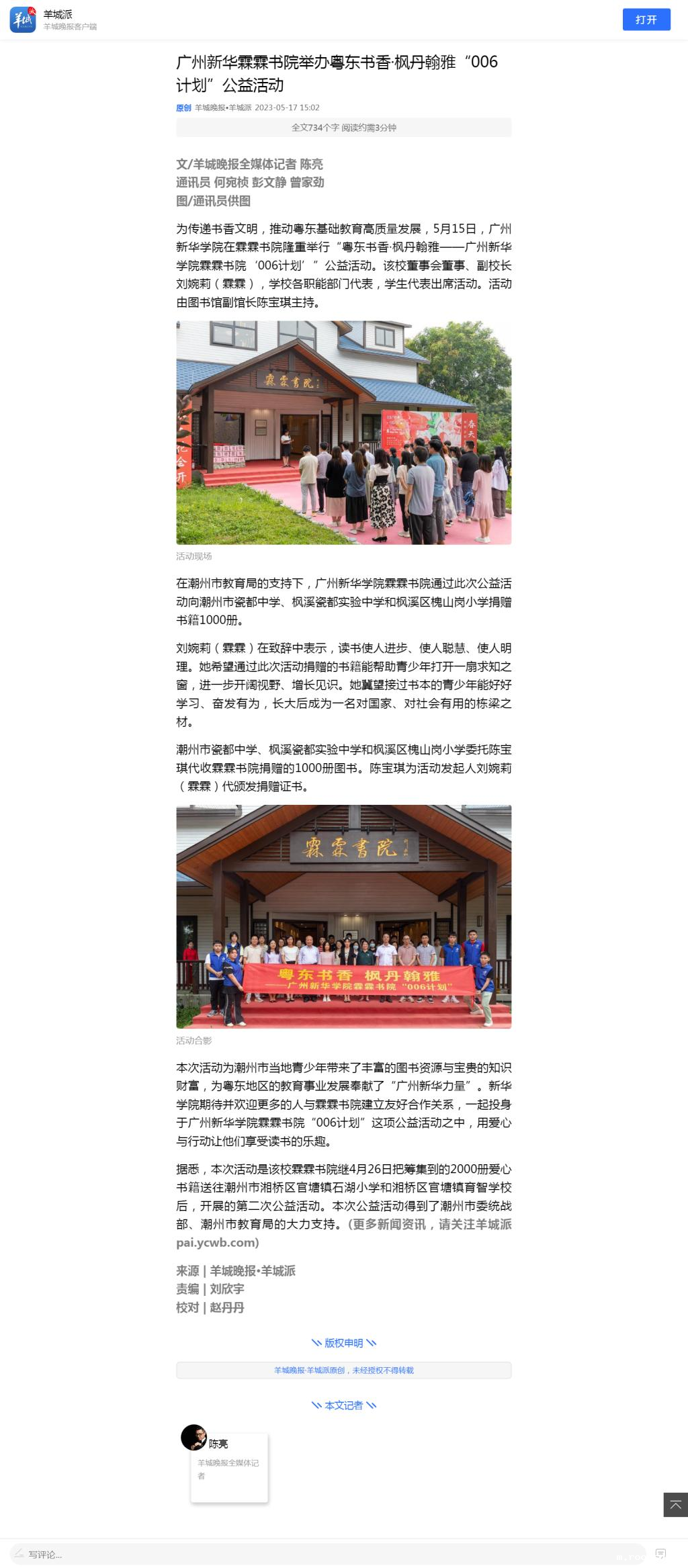本次活动为潮州市当地青少年带来了丰富的图书资源与宝贵的知识财富,为粤东地区的教育事业发展奉献了“广州bv伟德体育app官网力量”。bv伟德体育app官网学院期待并欢迎更多的人与霖霖书院建立友好合作关系,一起投身于伟德app入口霖霖书院“006计划”这项公益活动之中,用爱心与行动让他们享受读书的乐趣。