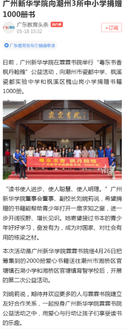 日前,伟德app入口在霖霖书院举行“粤东书香 枫丹翰雅”公益活动,向潮州市瓷都中学、枫溪瓷都实验中学和枫溪区槐山岗小学捐赠书籍1000册。