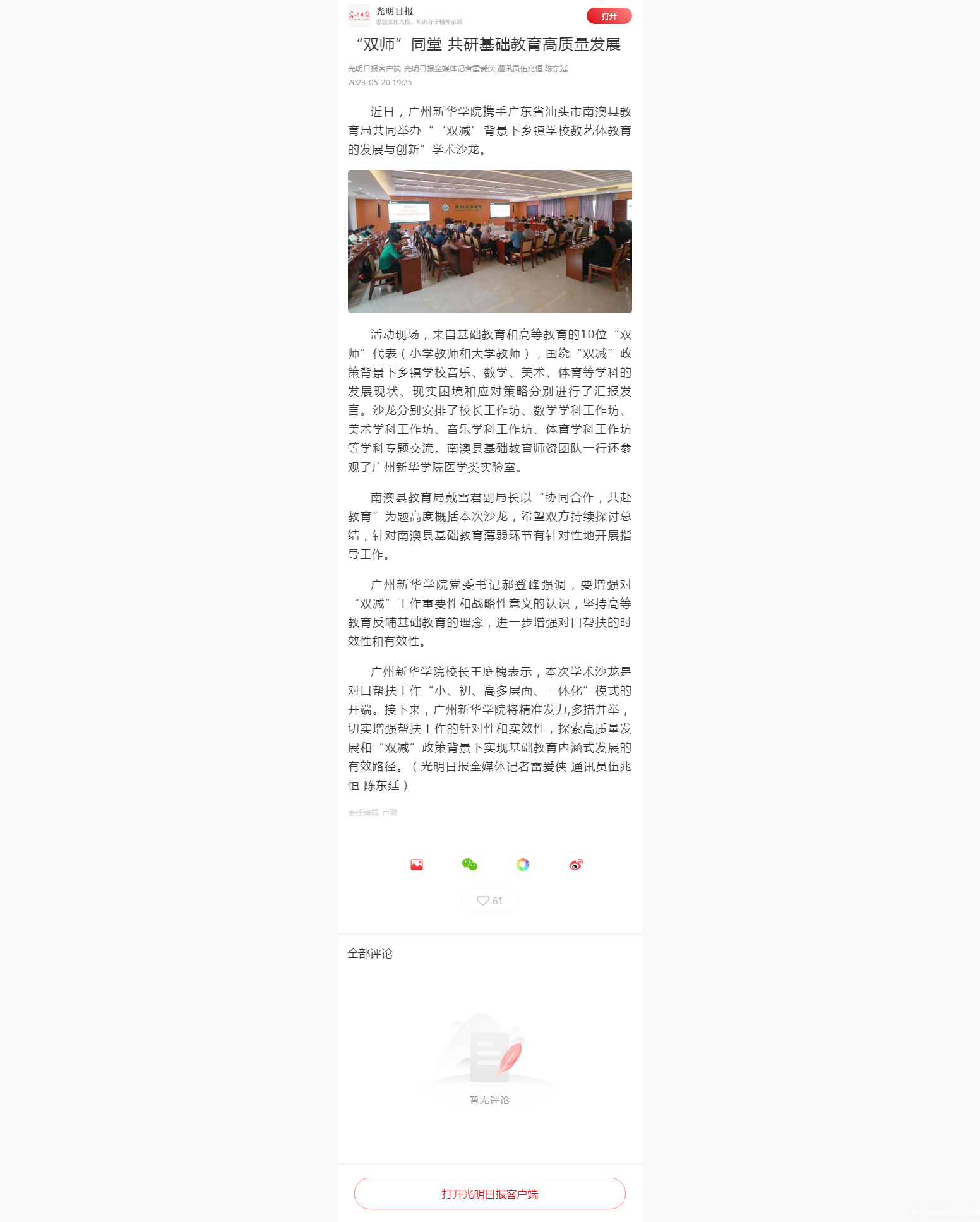 近日,伟德app入口携手广东省汕头市南澳县教育局共同举办“‘双减’背景下乡镇学校数艺体教育的发展与创新”学术沙龙。