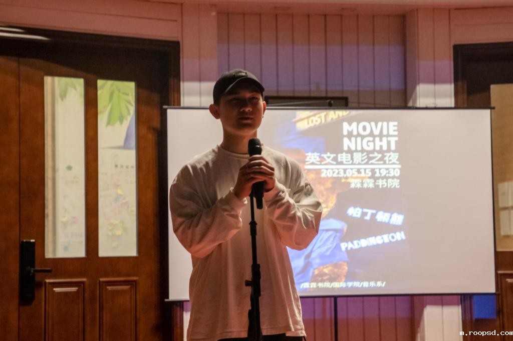 随着现场灯光暗下,电影正式放映。播放的电影《帕丁顿熊》讲述了一只年轻的秘鲁小熊来到伦敦后和人类发生的一系列特殊而暖心的故事,选片题材满足了学生探索未知和了解外国文化的需求,同学观影热情高涨。本次活动还邀请了由音乐系教师史扬子指导的学生现场演唱曲目,现场歌声悠扬,氛围活跃。