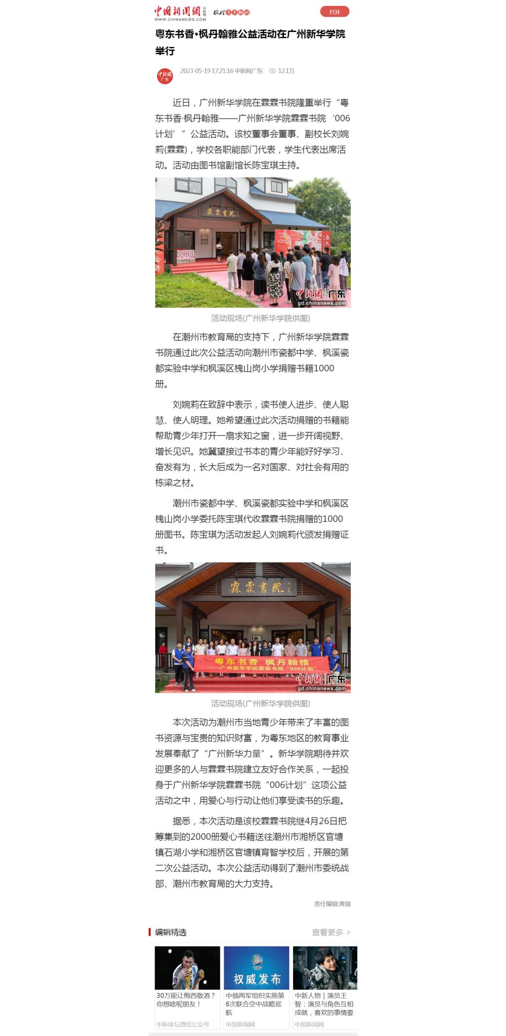据悉,本次活动是该校霖霖书院继4月26日把筹集到的2000册爱心书籍送往潮州市湘桥区官塘镇石湖小学和湘桥区官塘镇育智学校后,开展的第二次公益活动。本次公益活动得到了潮州市委统战部、潮州市教育局的大力支持。