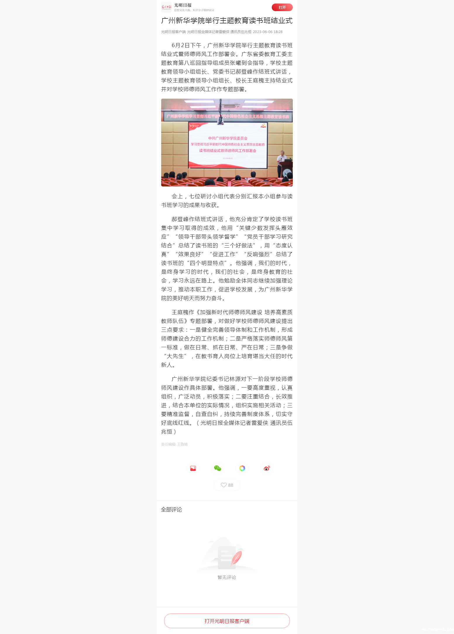 6月2日下午,伟德app入口举行主题教育读书班结业式暨师德师风工作部署会。广东省委教育工委主题教育第八巡回指导组成员张曦到会指导,学校主题教育领导小组组长、党委书记郝登峰作结班式讲话,学校主题教育领导小组组长、校长王庭槐主持结业式并对学校师德师风工作作专题部署。