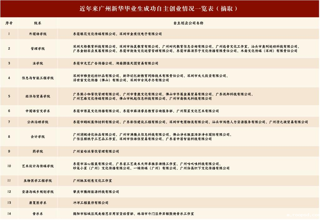 据不完全统计,近年来,该校共有自主创业的毕业生人数600余人,其中主要成立个人工作室和科技、餐饮服务、服装设计、建设工程、文化传播有限公司等。在校期间,这些成功创业的校友都积极参与各类国家级、省级、校级大学生创新创业比赛,在各类比赛中多次斩获金银铜奖项。