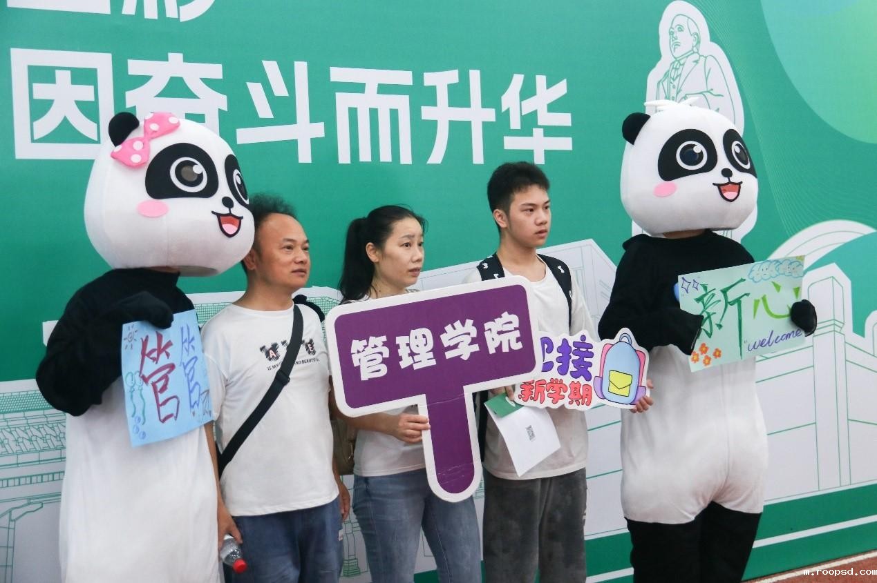 管理学院王炫崇同学在此次迎新志愿中,扮演了一只名为“管管”的熊猫。这次以一种创新的志愿者形象出现在新生报到点“暖场”,展示了学校管理学院的风貌。在此过程中,他遇到了许多可爱的“萌新”热情合影。“亲身见证他们初入校园时那份青涩与活力,为他们带去欢乐令我兴奋且难忘。”他说。