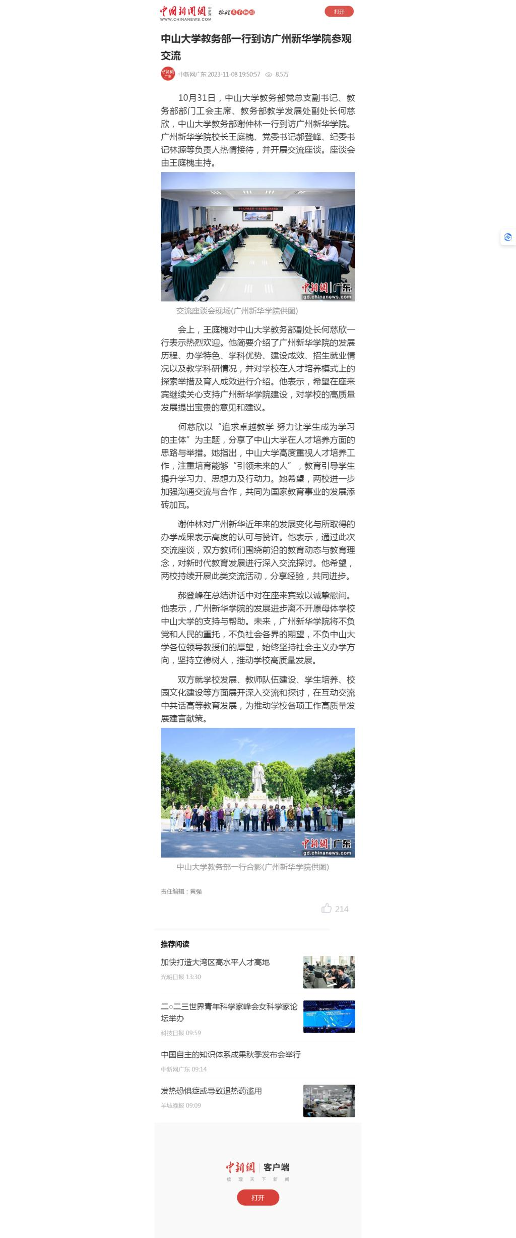 谢仲林对广州bv伟德体育app官网近年来的发展变化与所取得的办学成果表示高度的认可与赞许。他表示,通过此次交流座谈,双方教师们围绕前沿的教育动态与教育理念,对新时代教育发展进行深入交流探讨。他希望,两校持续开展此类交流活动,分享经验,共同进步。