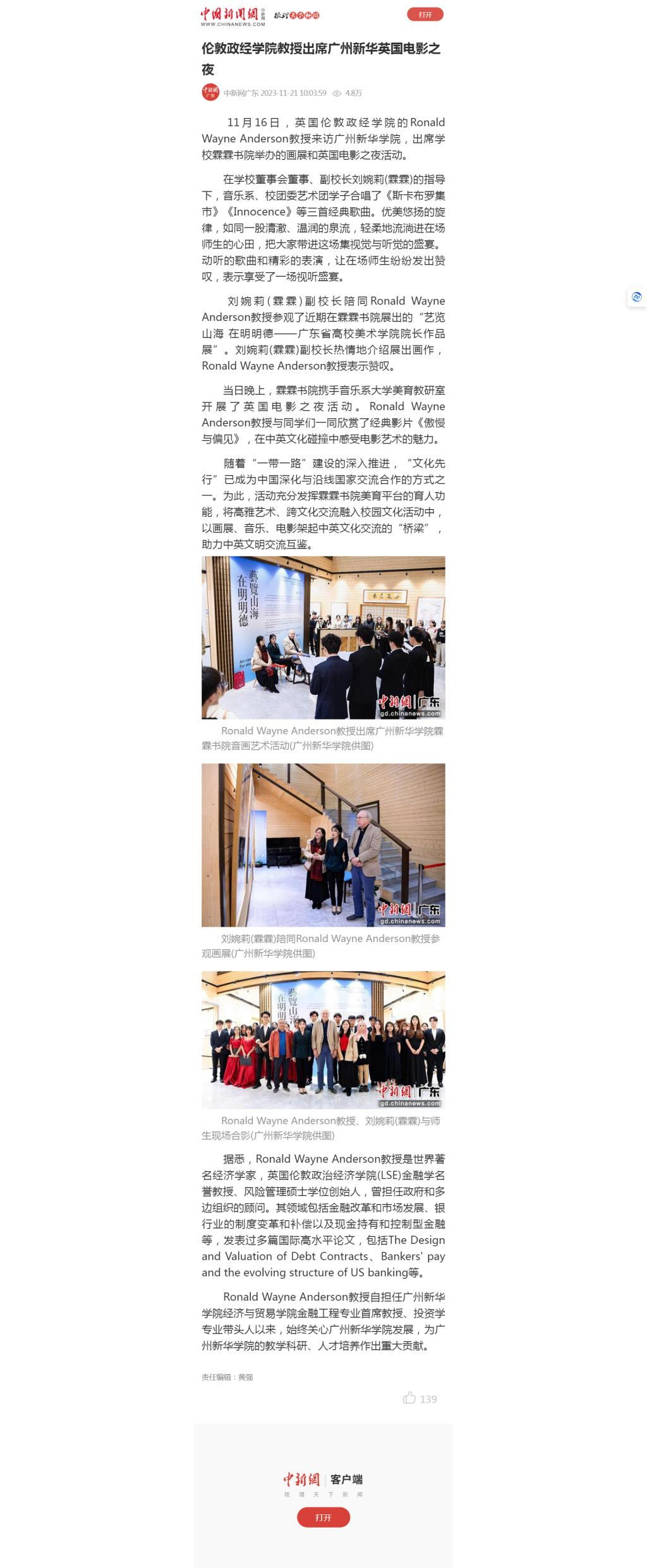 11月16日,英国伦敦政经学院的Ronald Wayne Anderson教授来访伟德app入口,出席学校霖霖书院举办的画展和英国电影之夜活动。