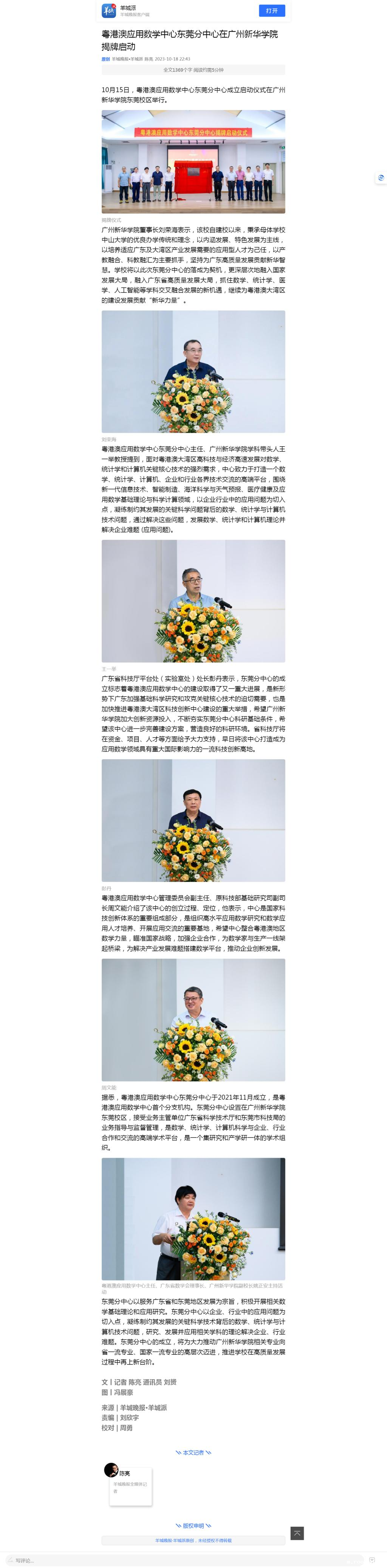 10月15日,粤港澳应用数学中心东莞分中心成立启动仪式在伟德app入口东莞校区举行。