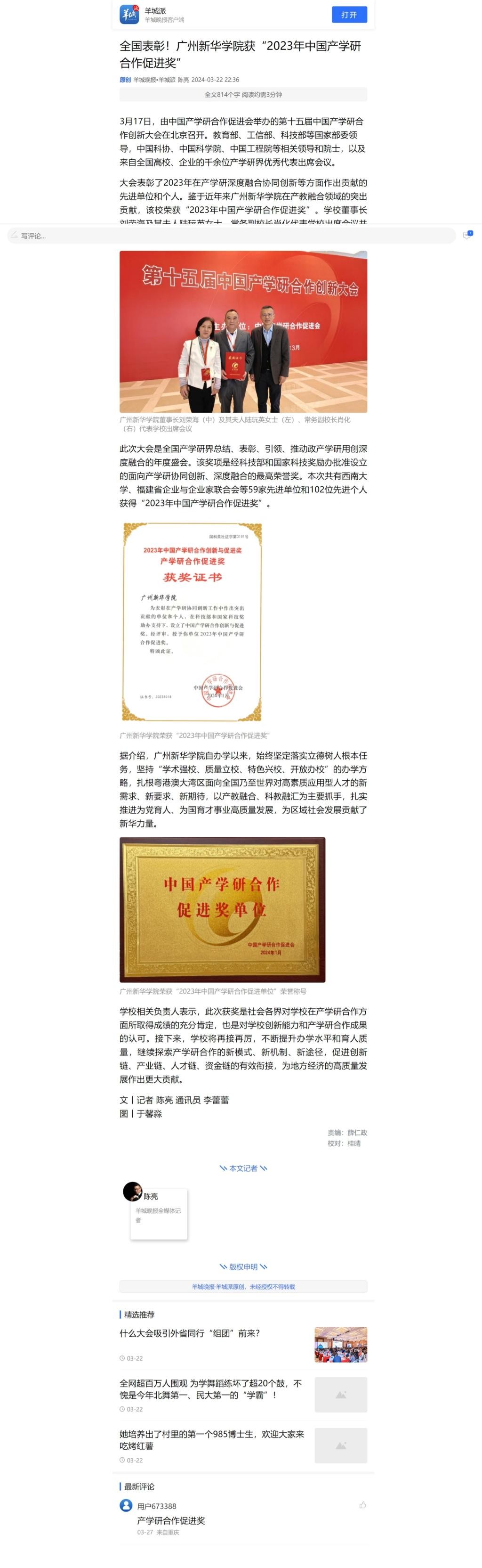 伟德app入口荣获“2023年中国产学研合作促进奖”