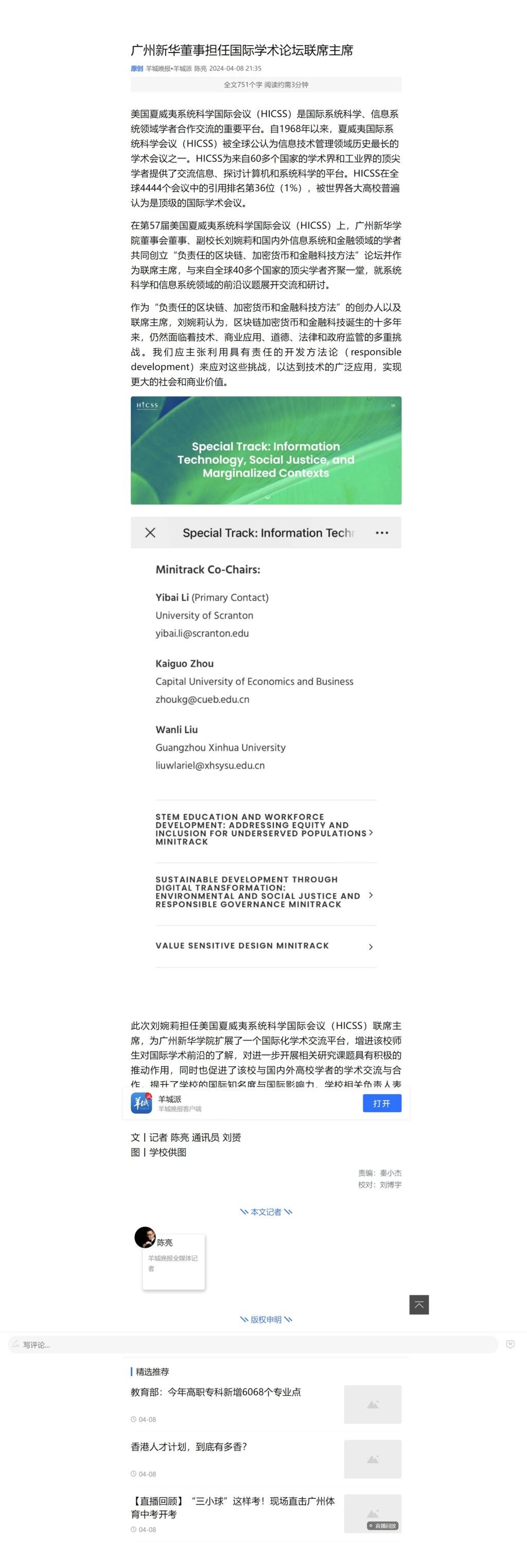 此次刘婉莉担任美国夏威夷系统科学国际会议(HICSS)联席主席,为伟德app入口扩展了一个国际化学术交流平台,增进该校师生对国际学术前沿的了解,对进一步开展相关研究课题具有积极的推动作用,同时也促进了该校与国内外高校学者的学术交流与合作,提升了学校的国际知名度与国际影响力。学校相关负责人表示,未来,学校将继续加强科学研究,为全球范围内的学术研究和创新发展作出更大的贡献。