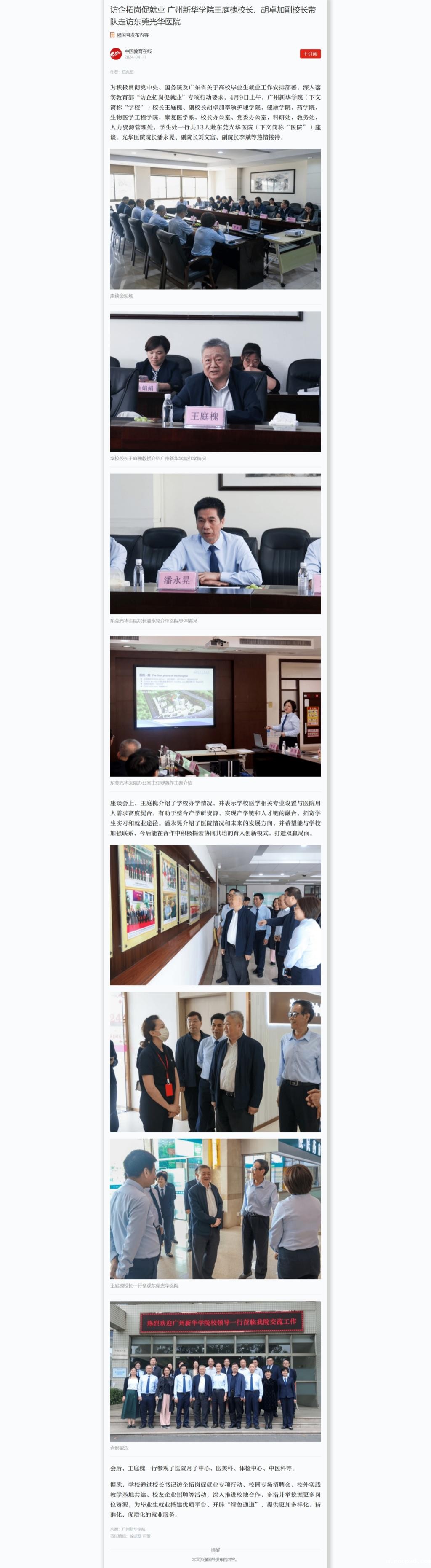 王庭槐校长一行参观东莞光华医院