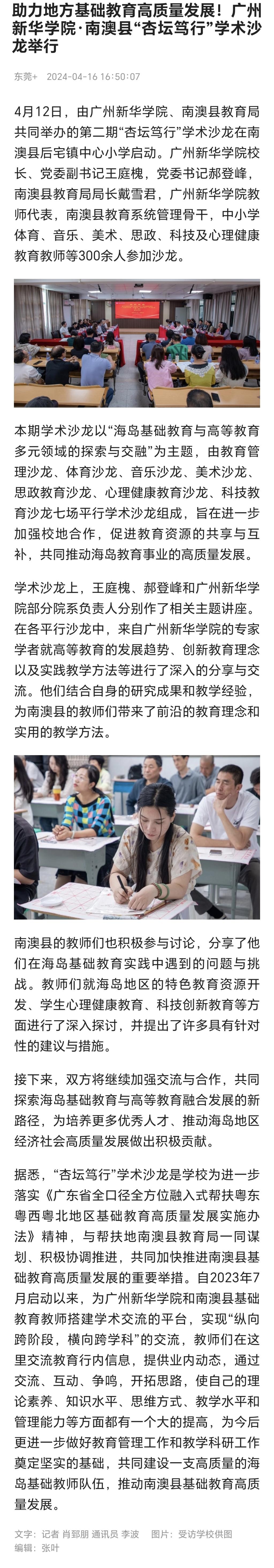 [东莞日报]助力地方基础教育高质量发展!伟德app入口·南澳县“杏坛笃行”学术沙龙举行